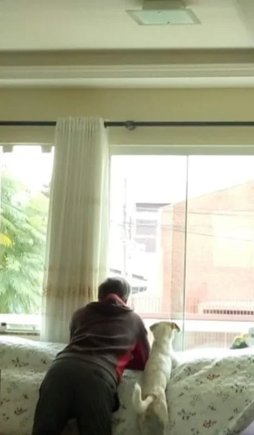 Loli beside her guardian, watching the street: clear signs that love also lives in the simplest moments.
