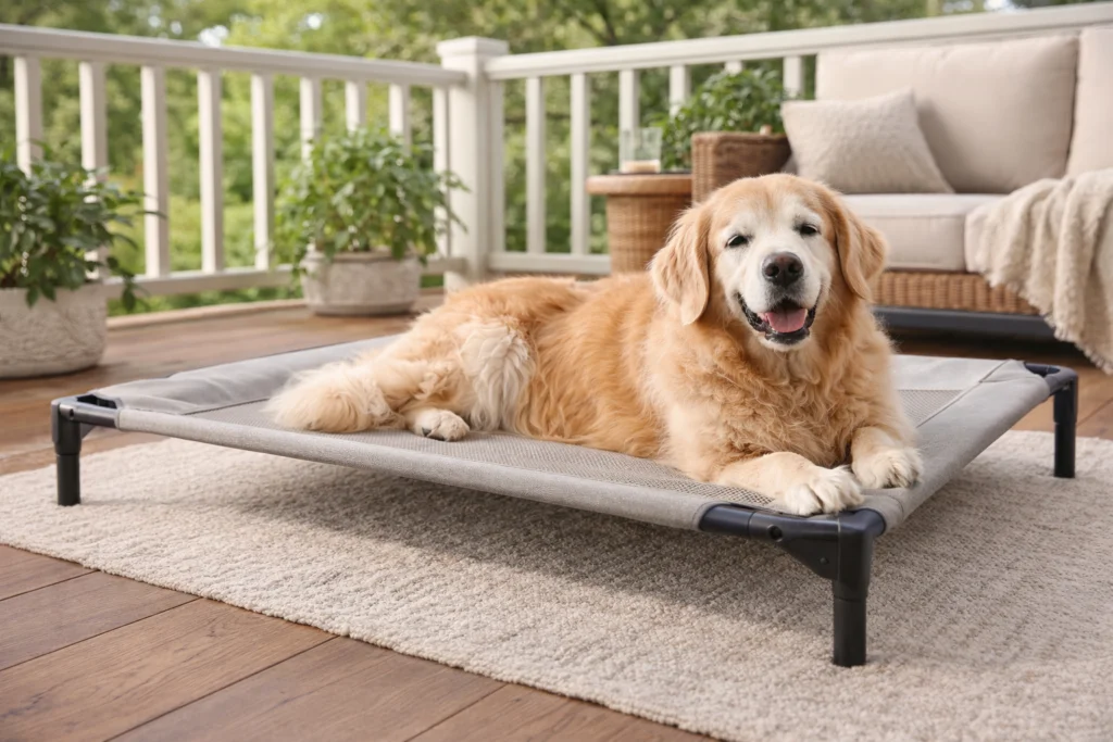 See recommendations for elevated beds for senior dogs, when ventilation and structural support are part of functional rest: https://amzn.to/46Dk0AT