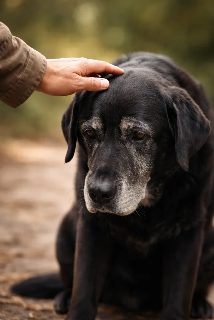 In many cases, the dog does not show obvious pain while walking, yet reacts subtly to manual contact. Sensitivity to touch in senior dogs is often one of the earliest signs that something has changed in the body.